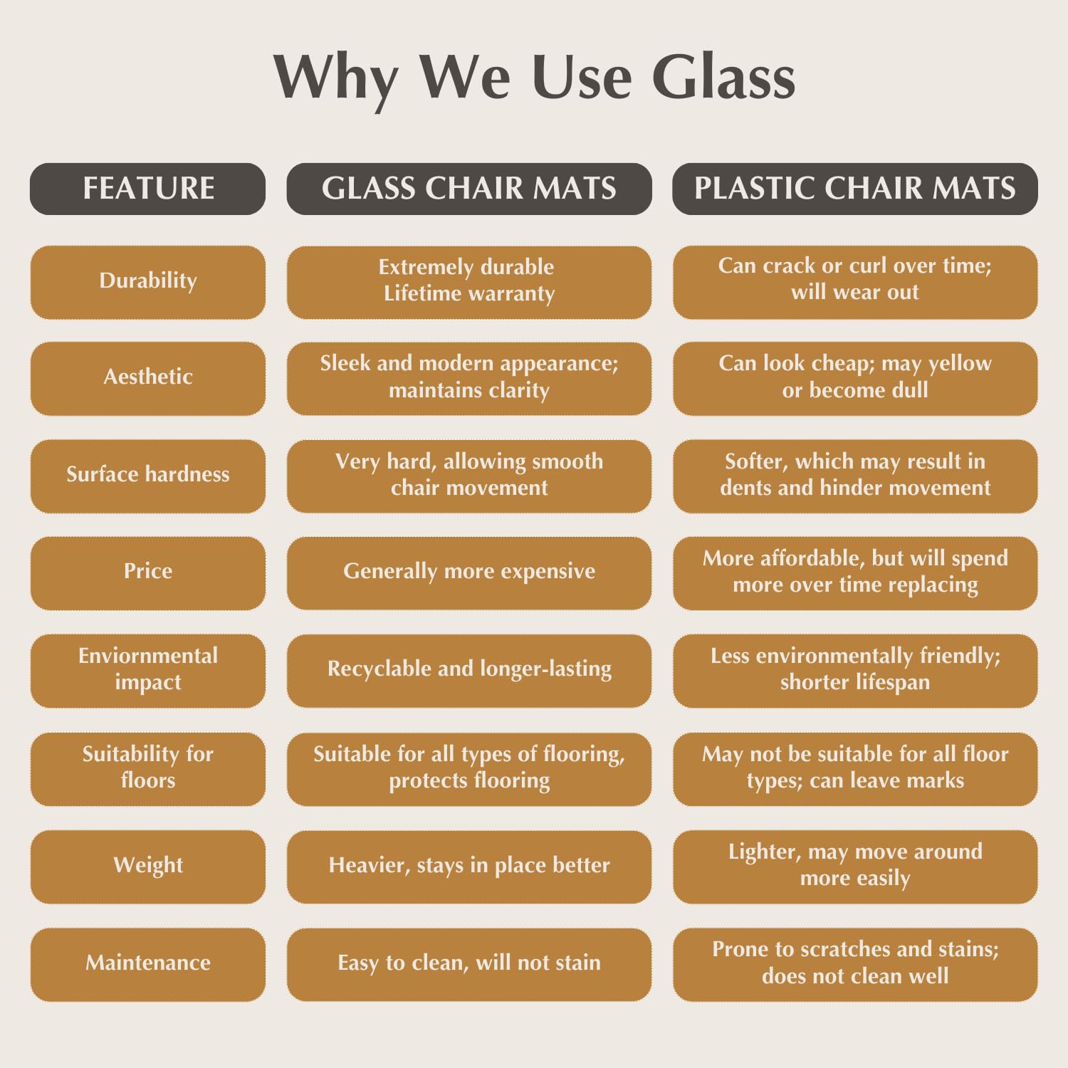 - ๐ฃ๐ฅ๐๐ ๐๐จ๐ ๐๐๐๐๐ฅ ๐ ๐๐ง - Clearly Innovative set out to create the best ยผโ thick tempered glass chair mats on the market and have done so with their exclusive patented beveled-edge design that provides a smooth transition from our premium glass mat to carpet or hard floors and is matched by no other manufacturer.
