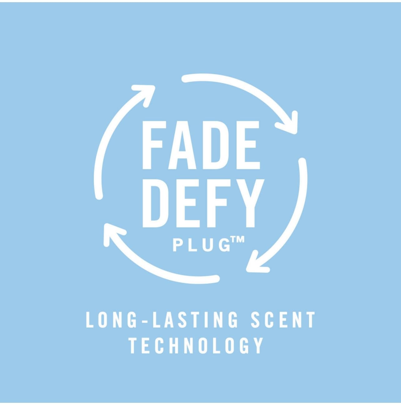 Details: Have you experienced your plug air freshener scent fading? Good news: Febreze Fade Defy PLUG Air Freshener stays true to its name, delivering a first day fresh that lasts a full 50 days (on low setting). Ready to hit refresh and be an A odor eliminator? Just refill the Febreze Fade Defy PLUG and plug it into any outlet (they'll even rotate if your outlet is upside down) in any high-traffic area of your home... the kitchen, bathroom, or anywhere else odors like to linger. Bonus? When it's time for a refill, the automatic air freshener will let you know with its handy low-level indicator light. And this scent refill pack comes with two Fade Defy PLUG refills so you can keep that freshness going. With the calming scent of April Downy + Mediterranean Lavender, you can enjoy a delightful floral breeze of freshness. Looking for an instant burst of fresh on funky fabrics? Give Febreze Fabric Refresher a try.