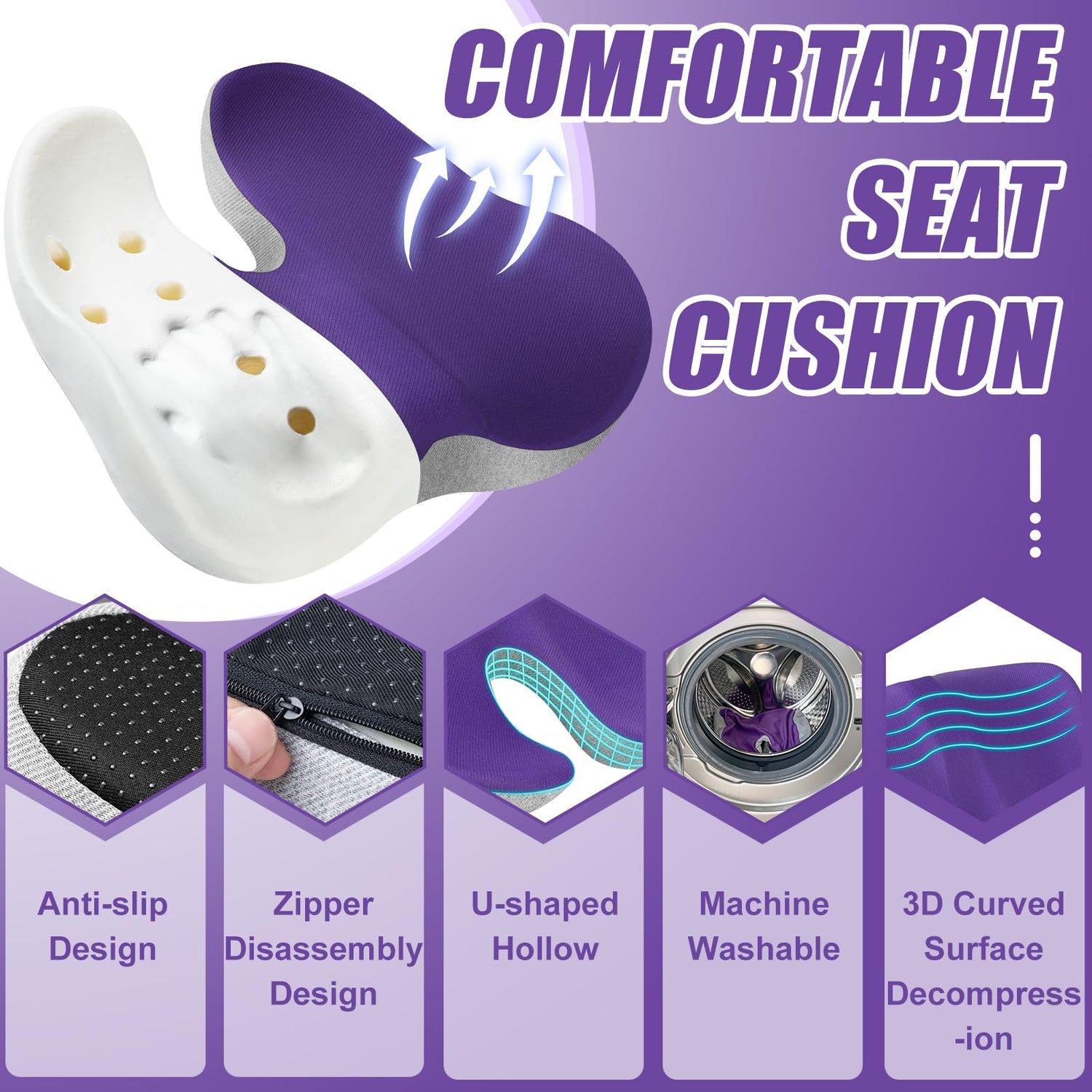 FOKEP Seat Cushion, X Large Memory Foam Cushion for Office Chair Cushions, Car Seat, Gaming Chair, Ergonomic Cushions Pad Pillow for Sciatica, Tailbone Pain Relief and Long Sitting (Purple)