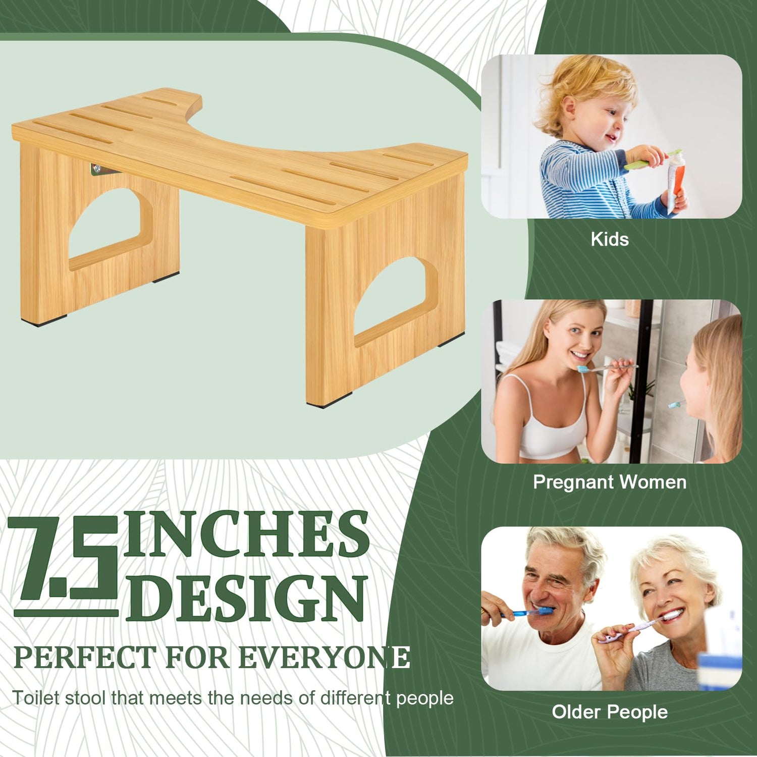 - Perfect for Everyone: You will get a folding poop stool in the package, the size of the stool is about 40 x 21 x 19.5 cm/ 15.7 x 8.3 x 7.5 inches. This bamboo toilet stool has a height of 7.5 inches, which can meet the requirements of most people, including the elderly, children, pregnant women, etc. As well as the need for toilets of different heights. The 7.5 inch bathroom stool fits toilets of different toilet heights