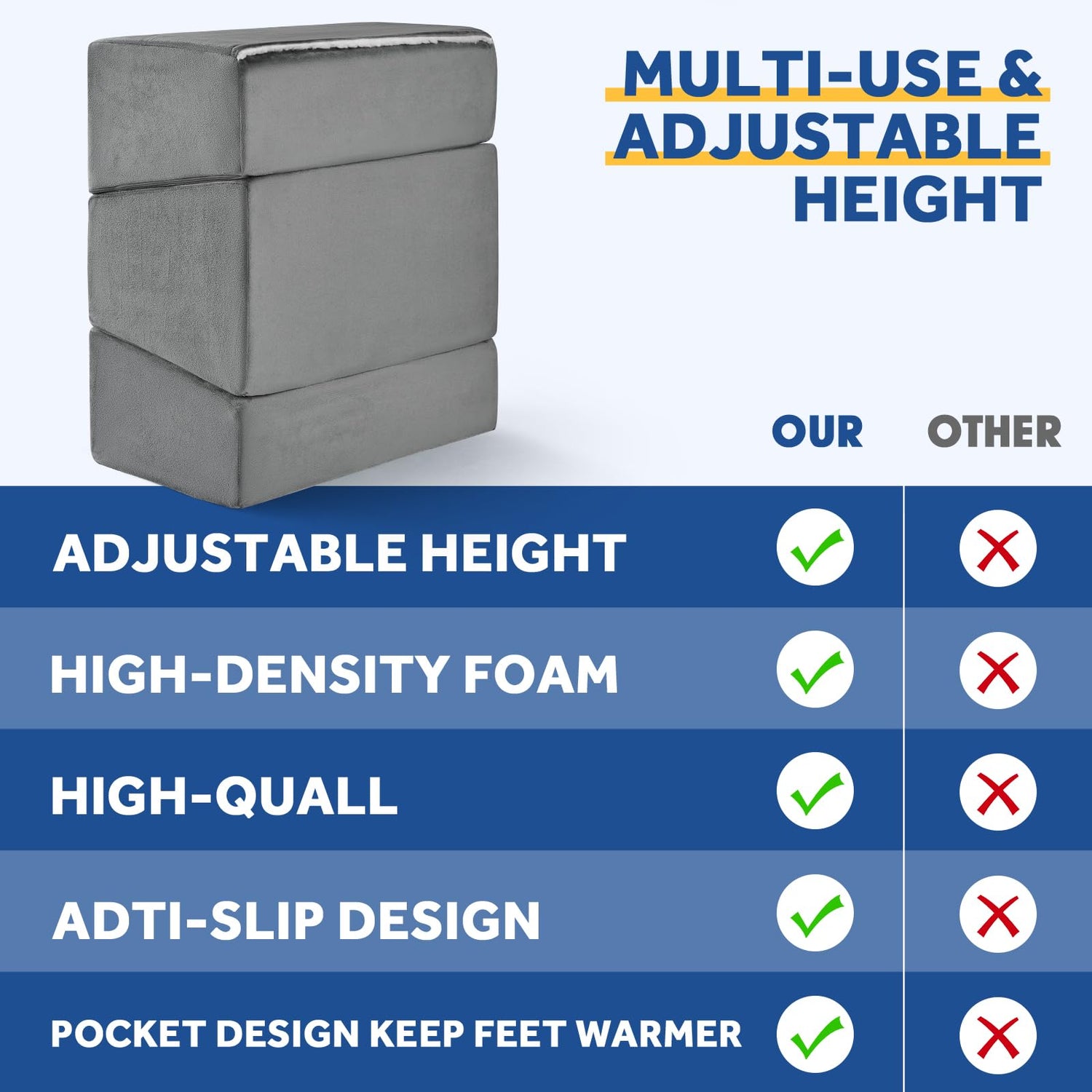 - ❤ [ Adjustable Foot Rest ] Wantell footstool offers you 3 adjustable height options of 6 inch and 11inch, 17inches. You can increase or decrease the number of layers according to the needs of different scenarios to maintain the correct sitting position while providing you with maximum comfort.