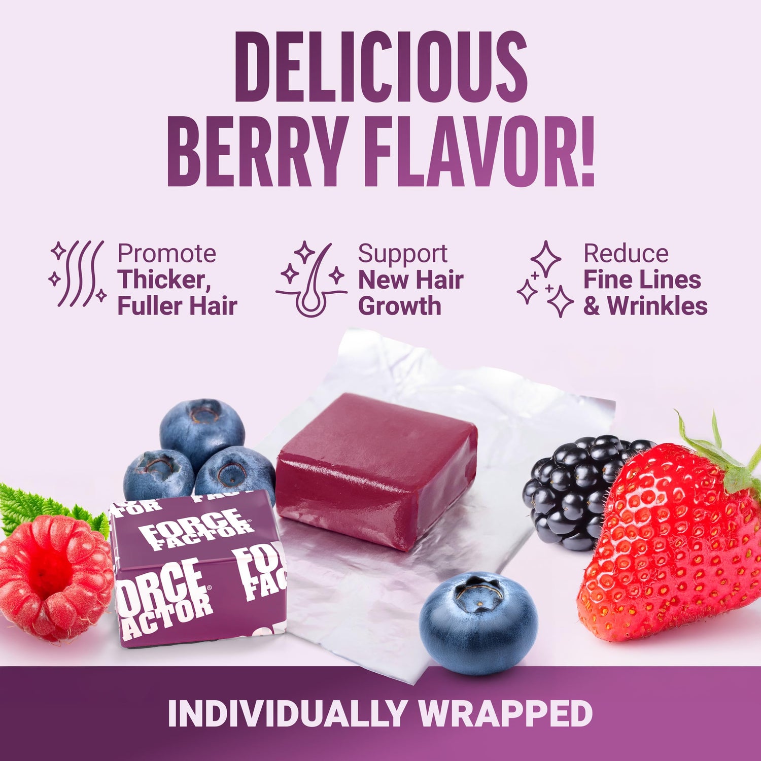 - FORTIFIED WITH BIOTIN & HAIR-NOURISHING ANTIOXIDANTS: Packed with hair vitamins, every chew works to enhance collagen production & scalp health with Vitamin C and E, boosting hair strength and protecting follicles for vibrant growth.