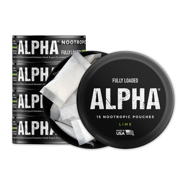 Fully Loaded Alpha Nootropic Pouches (Lime) - 5 Cans - 15 Pouches per can - Effective Nootropic Delivery, Nic Pouch Replacement - Faster Absorption, Alpha GPC, L-Tyrosine, GABA