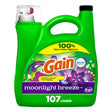 - Includes one 154 fl oz bottle of Gain + Aroma Boost Liquid Laundry Deteregent, Moonlight Breeze scent, enough for 107 loads