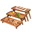 GEHE 3 Tier Serving Tray Acacia Wooden Tiered Tray Stand Foldable Dessert Table Display Set Decor Charcuterie Boards for Party, Birthday, Wedding, Christmas
