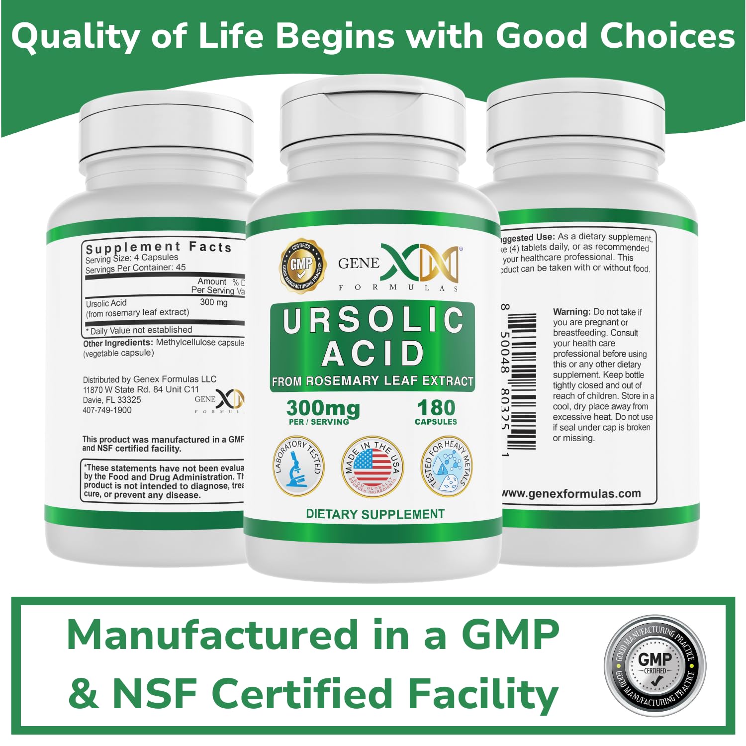 - 45-DAY SUPPLY - Each serving of Genex Formulas Ursolic Acid contains 300mg of Ursolic Acid (from Rosemary Leaf). Our capsules are easy to swallow and each bottle contains 180 capsules. For a serving of 300mg, take 4 capsules.