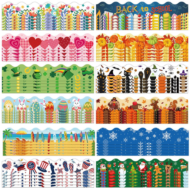 Geyee 360 Pcs Halloween Bulletin Board Borders Decorations Fall Thanksgiving Christmas Holiday Spring Easter Valentine Classroom Borders Bulletin Board Trim for Classroom School, 12 Design(Stylish)