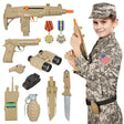 - HIGHLY DETAILED KIDS ARMY GEAR - To increase the fun of the Halloween army costumes pretend play game, the army accessories in this kids army Halloween dress up costumes set have realistic details and are closer to a real soldier's equipment. The other accessories can be controlled to produce authentic sounds. A plastic dagger with a scabbard prevents children from being accidentally injured in the game.