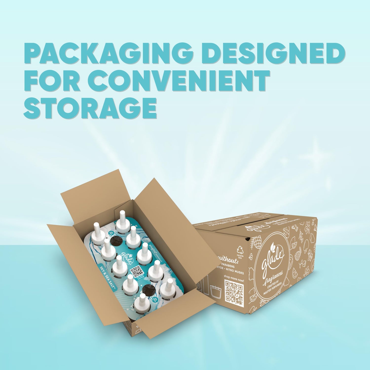 Details: Free your mind with Glade Plugins Scented Oil in the Sky & Sea Salt scent. Crafted by master perfumers with notes of ocean breeze, sea salt and driftwood. Made without parabens, phthalates, nitro musk or formaldehydes. Change the mood with 2x more adjustability (vs. previous Glade warmer). Simply remove the cap and insert it into the Glade plug in warmer. Plug it into an outlet and adjust the level of fragrance to create the mood you want. Feel at home with Glade's PlugIn air freshener and fragrance infused with Essential Oils.