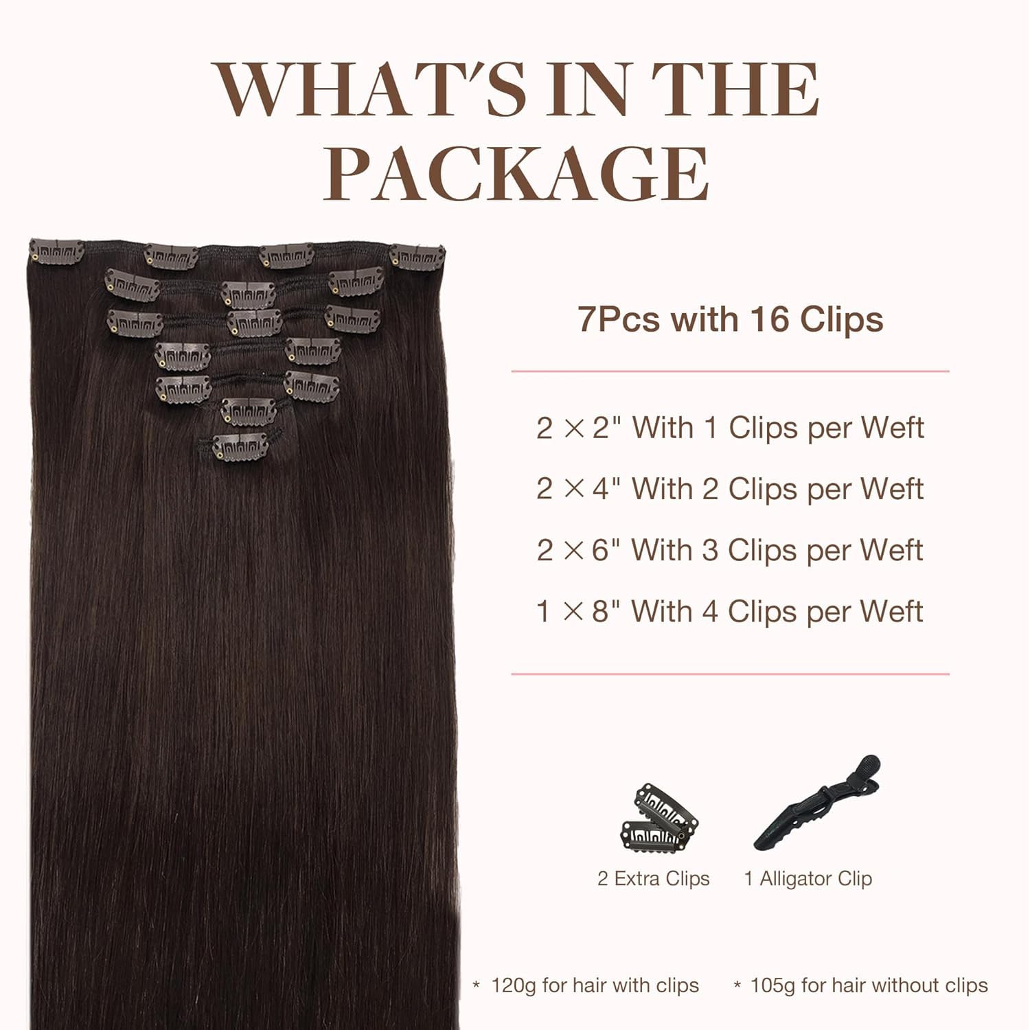 GOO GOO Clip in Hair Extensions Real Human Hair, Remy Human Hair Extensions Clip ins for Women, Natural Human Hair, 18inch 120g 7Pcs, 2A Light Brown