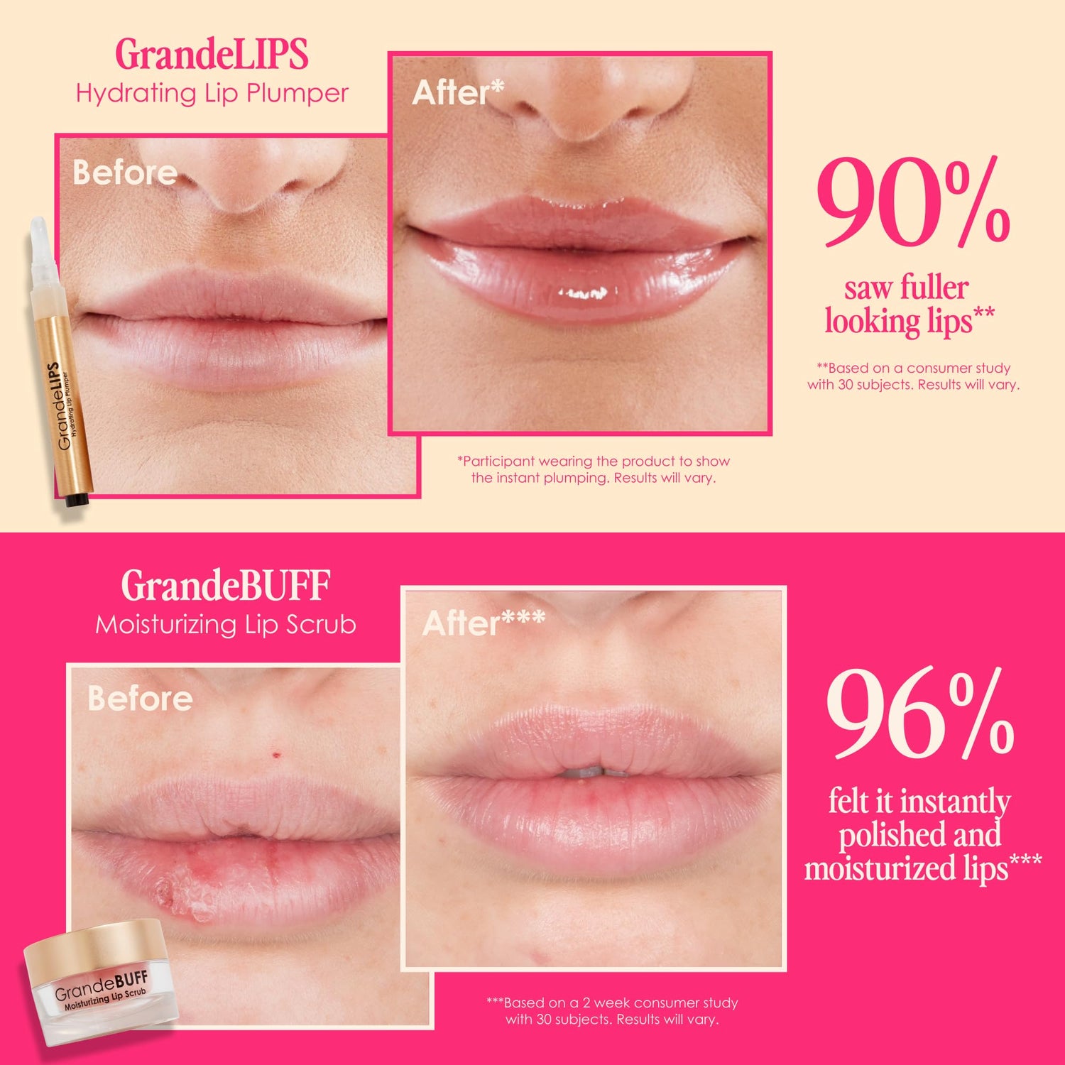 Details: Unleash the real you with this must-have set of our beauty enhancing non-negotiables. This 5-piece set has all the essentials to build your base for longer-, bolder-, and fuller-looking lashes, brows and lips. Includes a full size iconic GrandeLASH-MD & mini GrandeBROW serum, mini GrandeDRAMA mascara with castor oil, mini GrandeLIPS lip plumper with hyaluronic acid & travel GrandeBUFF moisturizing lip scrub.