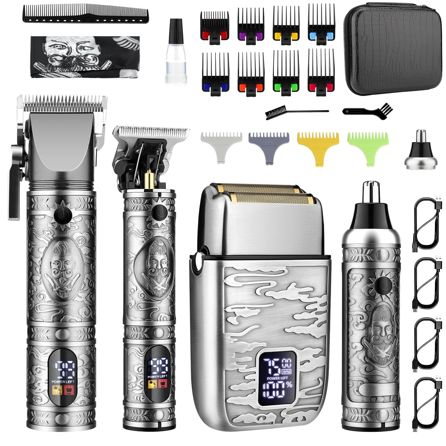 - 4 in 1 Grooming Set: This hair trimmer kit includes hair clippers, hair trimmer, foil shavers, and nose trimmer, providing everything you need for a professional haircut at home