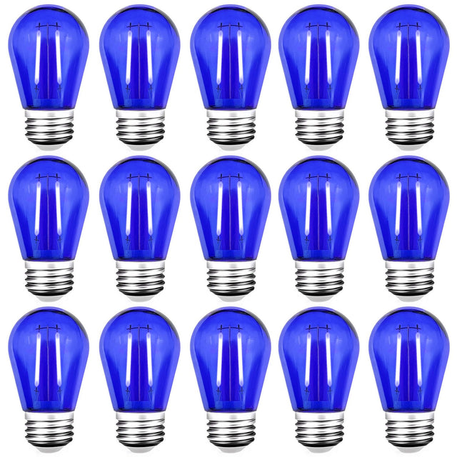 GUILEDUO 15 Pack S14 LED String Light Bulbs, Shatterproof 2 Watt Blue Replacement Bulbs for Outdoor String Light, Waterproof Decorative E26 Base Blue Filament Edison Christmas Light Bulbs, 120V