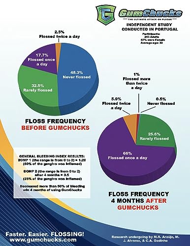 - Floss and Toss - Simply press the button to release the old floss pick. Independent Study demonstrated that GumChucks makes flossing so easy and fast, that 73.7% of people who tried GumChucks became regular daily flossers!