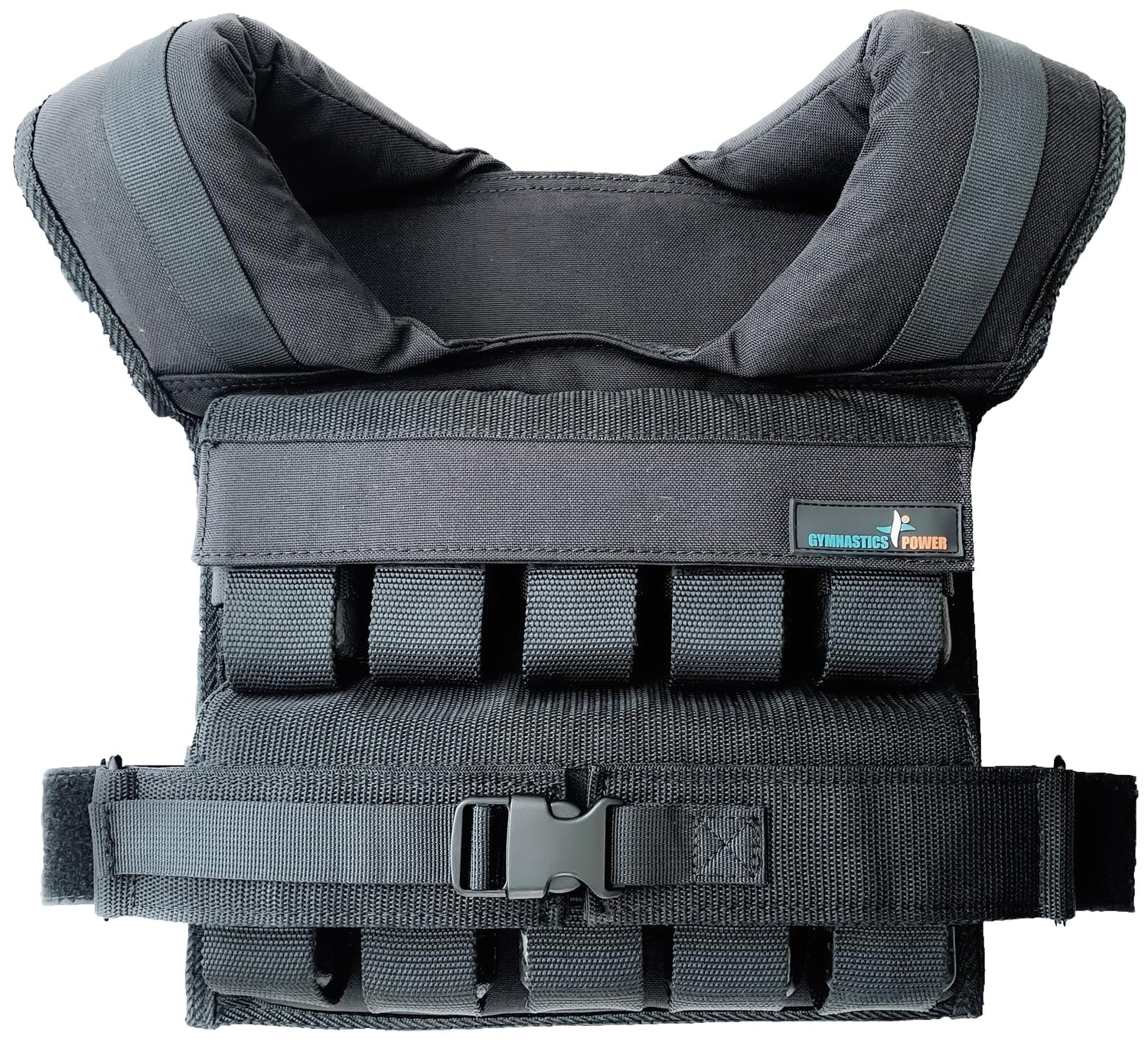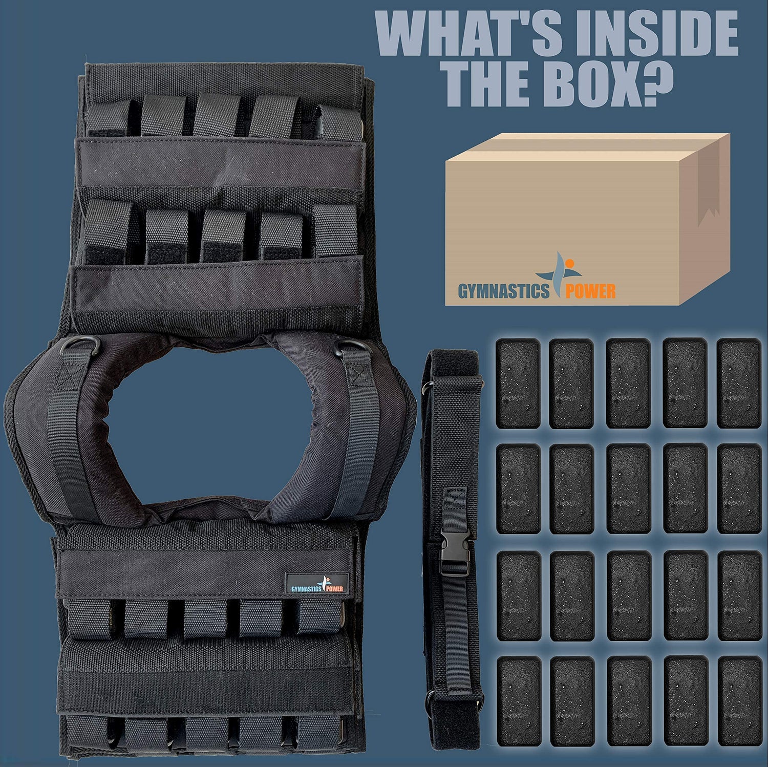 Gymnastics Power - Weighted Vest 6lb, 10lb, 12lb, 25lb, 35lb, 45lb, 60lb Removable Iron Weights for Men and Women Workout for Calisthenics and Fitness Sport Training (45 LB - Black)