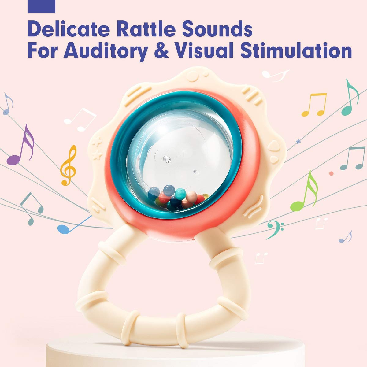 hahaland Baby Toys 0-6 Months - Baby Rattles Teething Toys 3-6 Month, Infant Toys 6-12 Months, Teether Grasping Shaker Toy 3 4 5 6 Month Old Must Haves Neutral Gifts Christmas Baby Stocking Stuffers