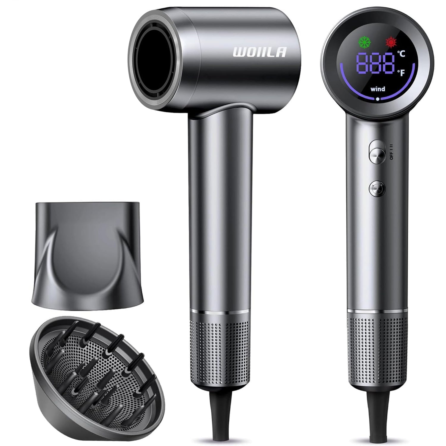 - 【High-Speed Motor for FAST DRYING】: woiila hair blow dryer is equipped with a 150000 RPM high-speed brushless motor and the wind speed up to 36 m/s, which strong airflow can dry your hair in a short time and is 5x faster than traditional hair dryers,this blow dryer can dry your hair in no time and reduce hair damage by increasing the wind speed instead of relying on high temperatures.