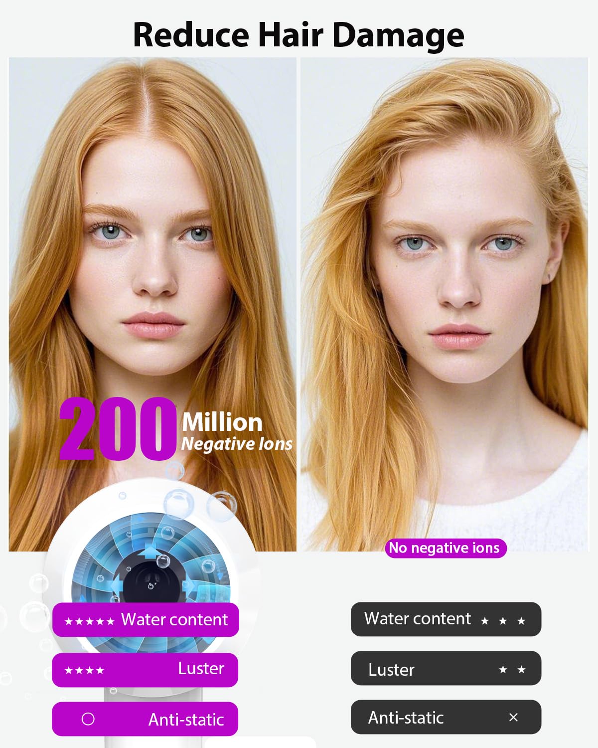 - ✅[Advanced Ionic Care for Silky-Smooth Hair] With the power of 200 million negative ions to deeply nourish your hair, repairing and protecting the cuticle layer for a healthier, shinier look. Say goodbye to frizz and tangles. Plus, our innovative technology attracts moisture molecules from the air, forming a protective layer on your hair to lock in hydration and enhance smoothness. With every use, your hair becomes silkier, softer, and easier to manage—effortless great hair days every day.