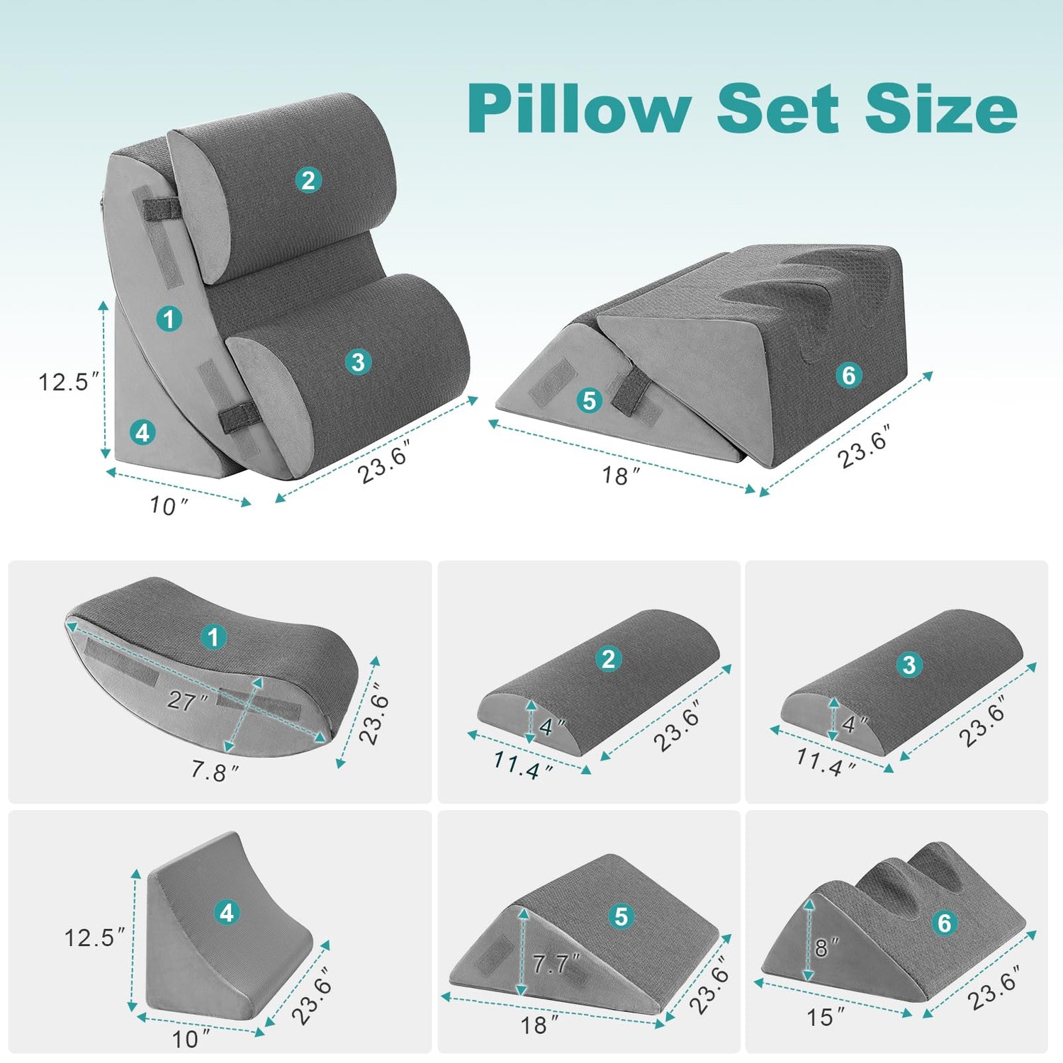 Hansleep 6PCS Orthopedic Bed Wedge Pillow for Sleeping, Adjustable Post Surgery Pillow Set for Body, Back and Leg Pain Relief, Memory Foam Support Pillows for After Surgery, Grey