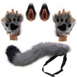 HAOAN Wolf Fox Tail Clip Ears and Gloves Set Halloween Christmas Fancy Party Costume for Women and Man Gray