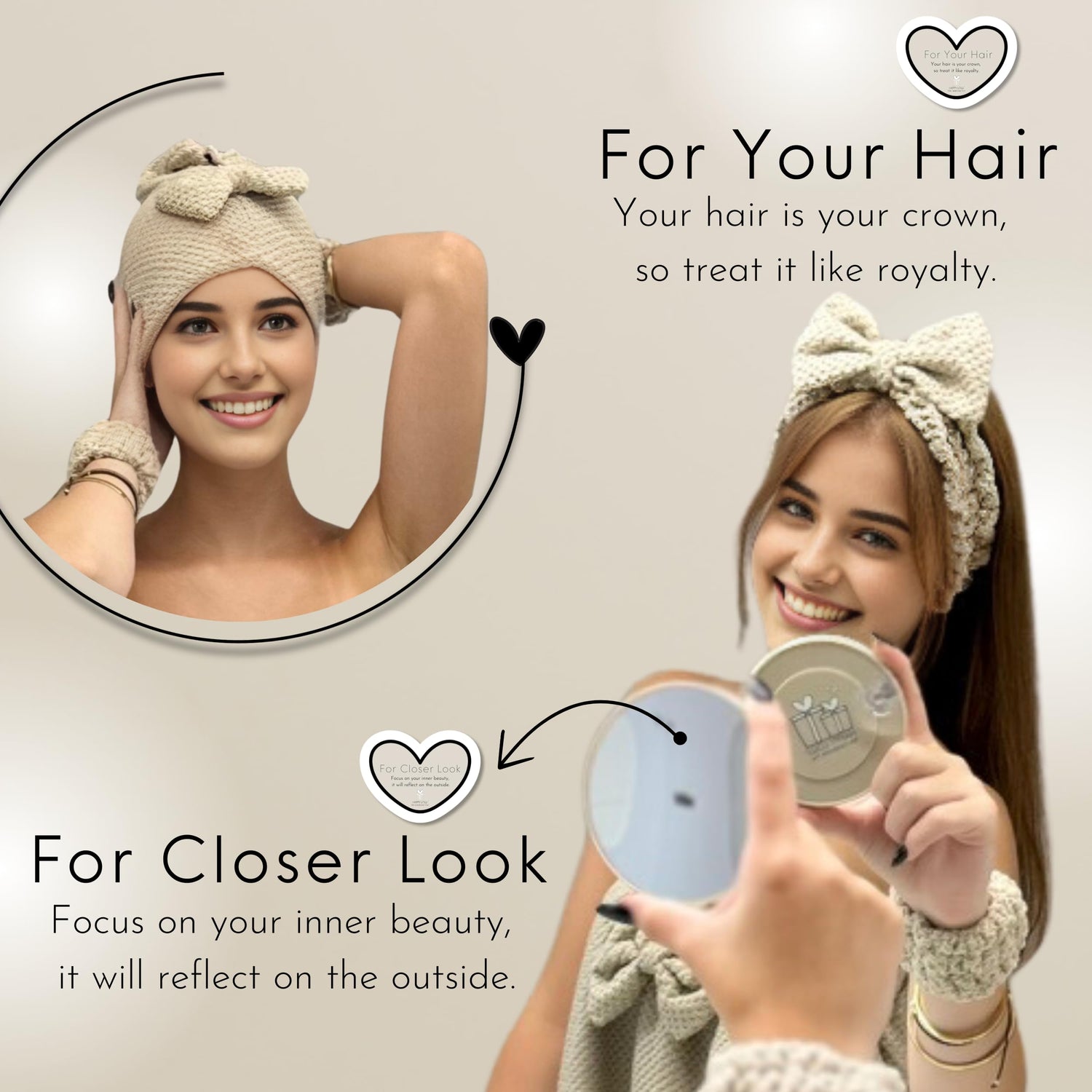 - Complete Pampering Collection: Includes a Body Towel, Hair Turban, Towel Headband, Two Wristbands, Two Precision Magnifying Mirrors, and Deluxe Silicone Sponges.