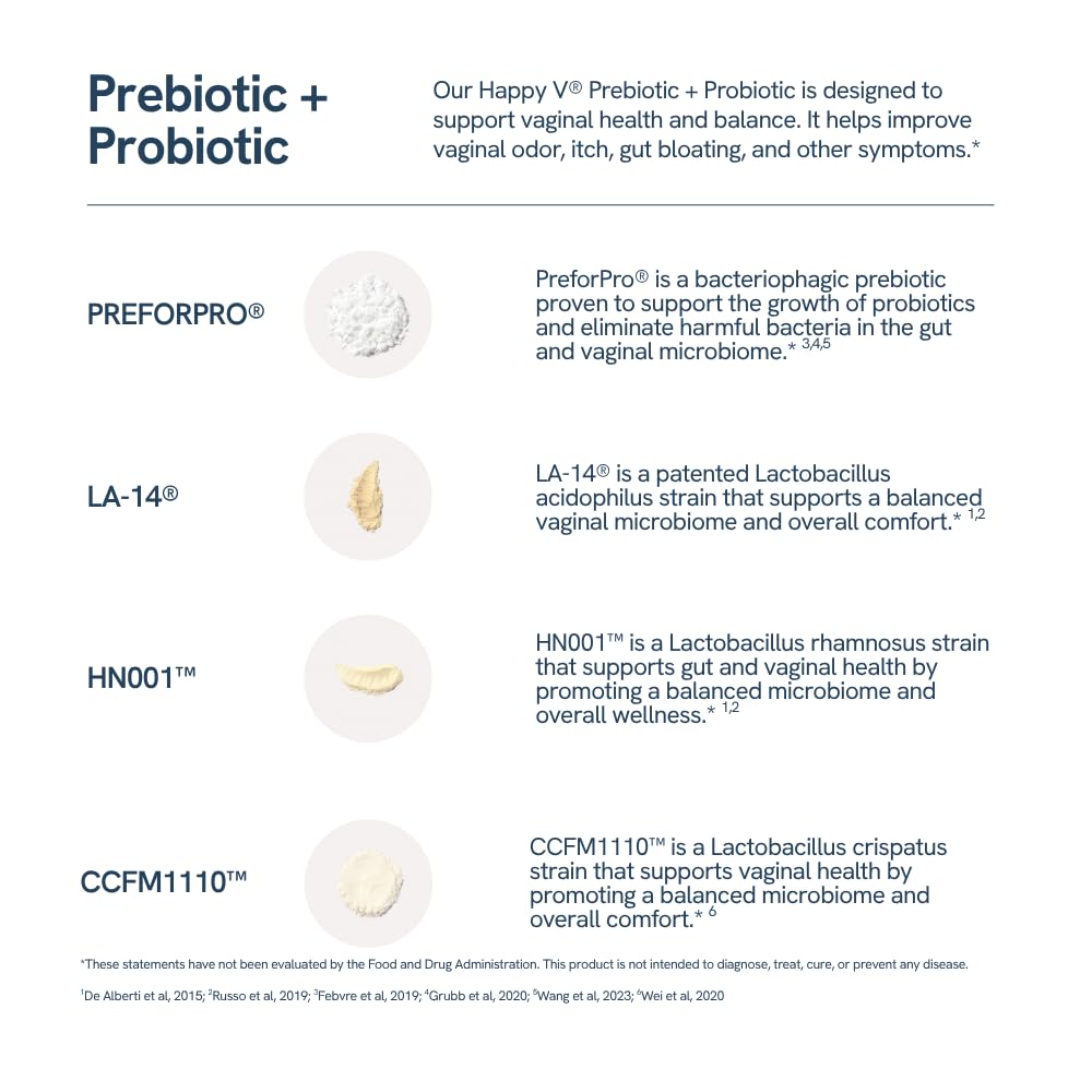 Happy V Dr. Formulated Vaginal Probiotics for Women Odor & Itch Support, Urinary & Gut Health, pH Balance | Womens Daily Probiotic with Patented Prebiotics & Lactobacillus for Feminine Wellness