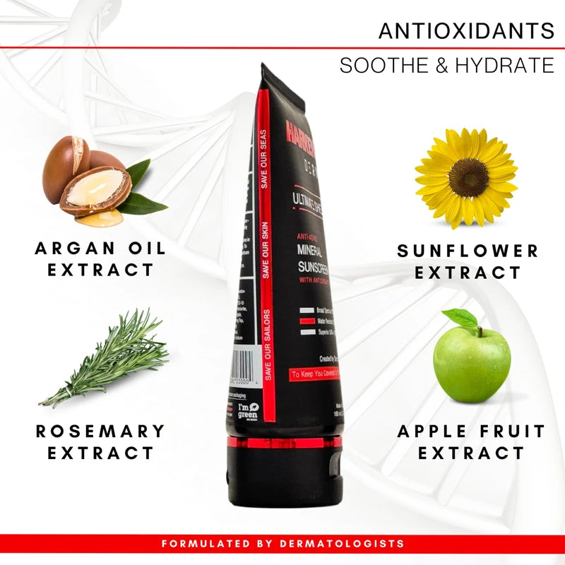 - [ POWERFUL BOTANICAL ANTIOXIDANT COMPLEX ] Beyond protection, our sunscreen nourishes and hydrates your skin while it protects. Enriched with 4 antioxidants derived from nature, our formula fights off free radicals and environmental aggressors, keeping it strong and hydrated even when you're pushing the limits.