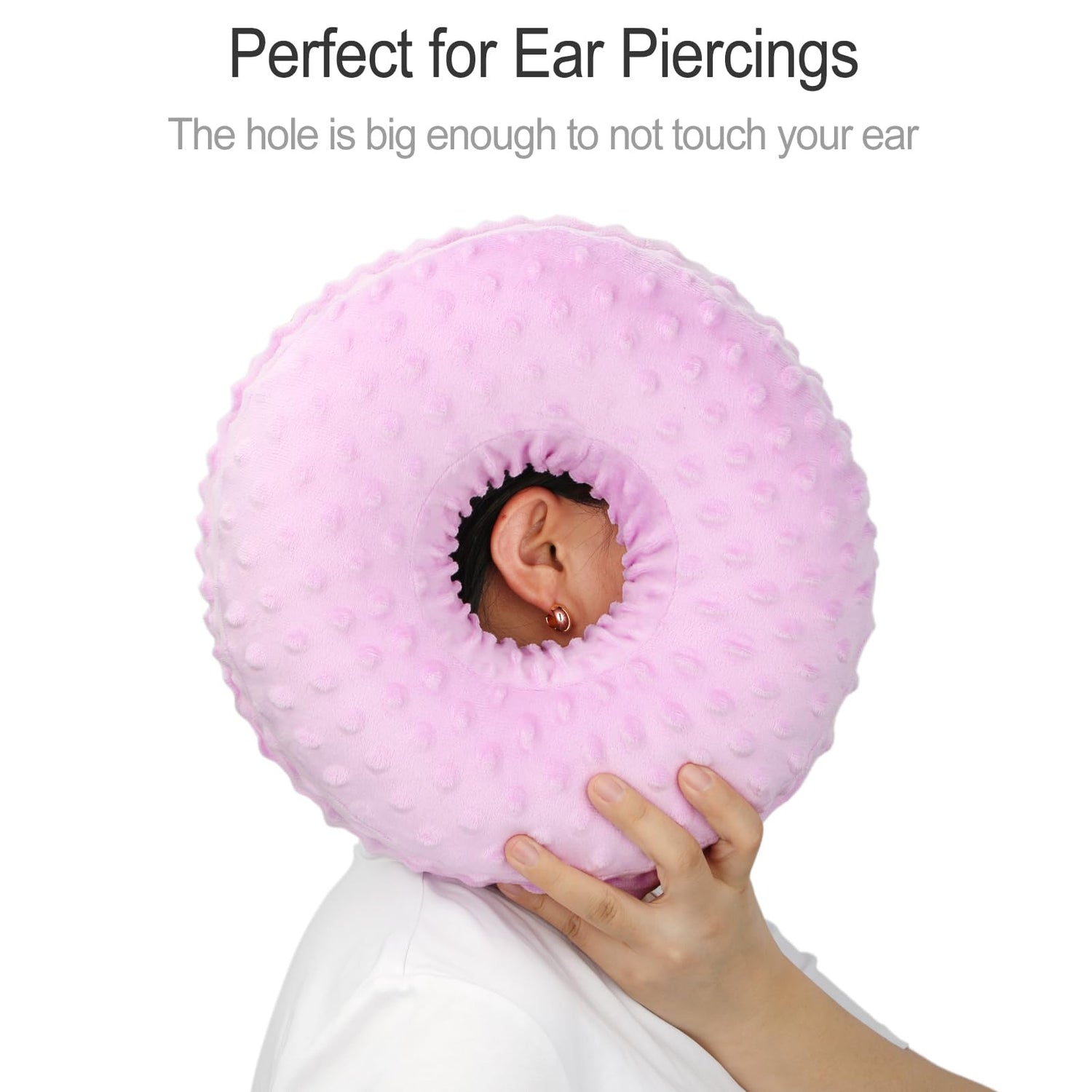 Heal n Hope Washable Ear Piercing Pillow with Removable Pillowcase Donut Pillows Hole for Ear Pain Relief CNH Sleeping Pressure Sore Side Sleepers Ear Guard Protector Cover (Minky Dot Lavender)