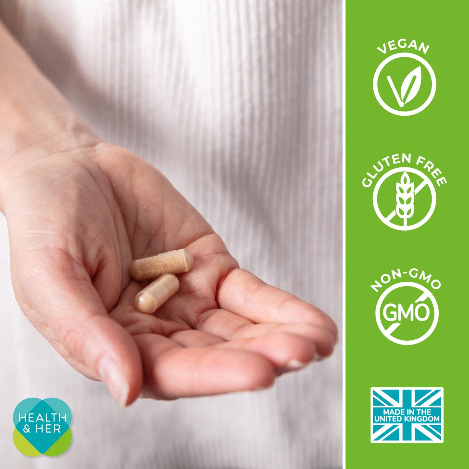 - TRUSTED MENOPAUSE SUPPLEMENTS FOR WOMEN - Formulated by experts, Health & Her Menopause supplements contain a blend of vitamins, minerals, active botanicals and phytoestrogens. Designed to support women's mental and physical wellbeing during menopause. Made in the UK