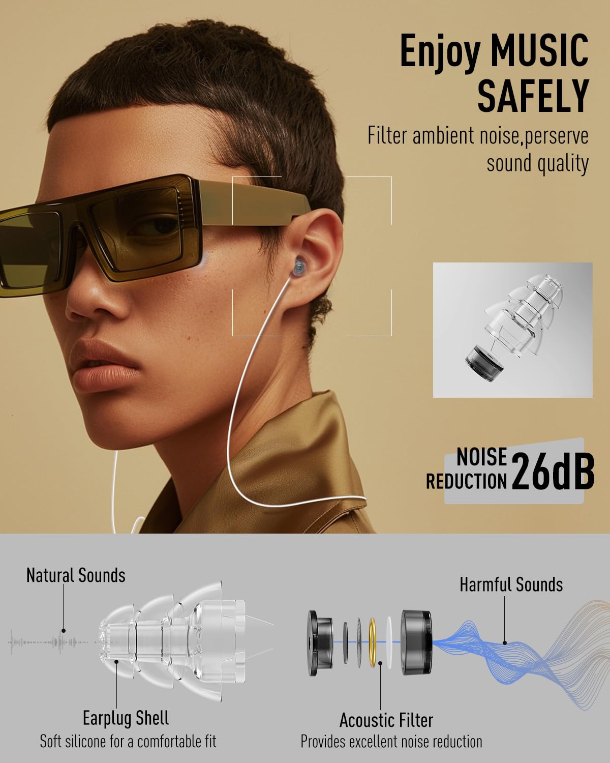- High Fidelity: Hearprotek Music ear plugs do an effective job of bringing down the overall volume, blocking background noises at a comfortable level while preserving the sound clarity and sharpness and you will be able to hear different sound frequencies