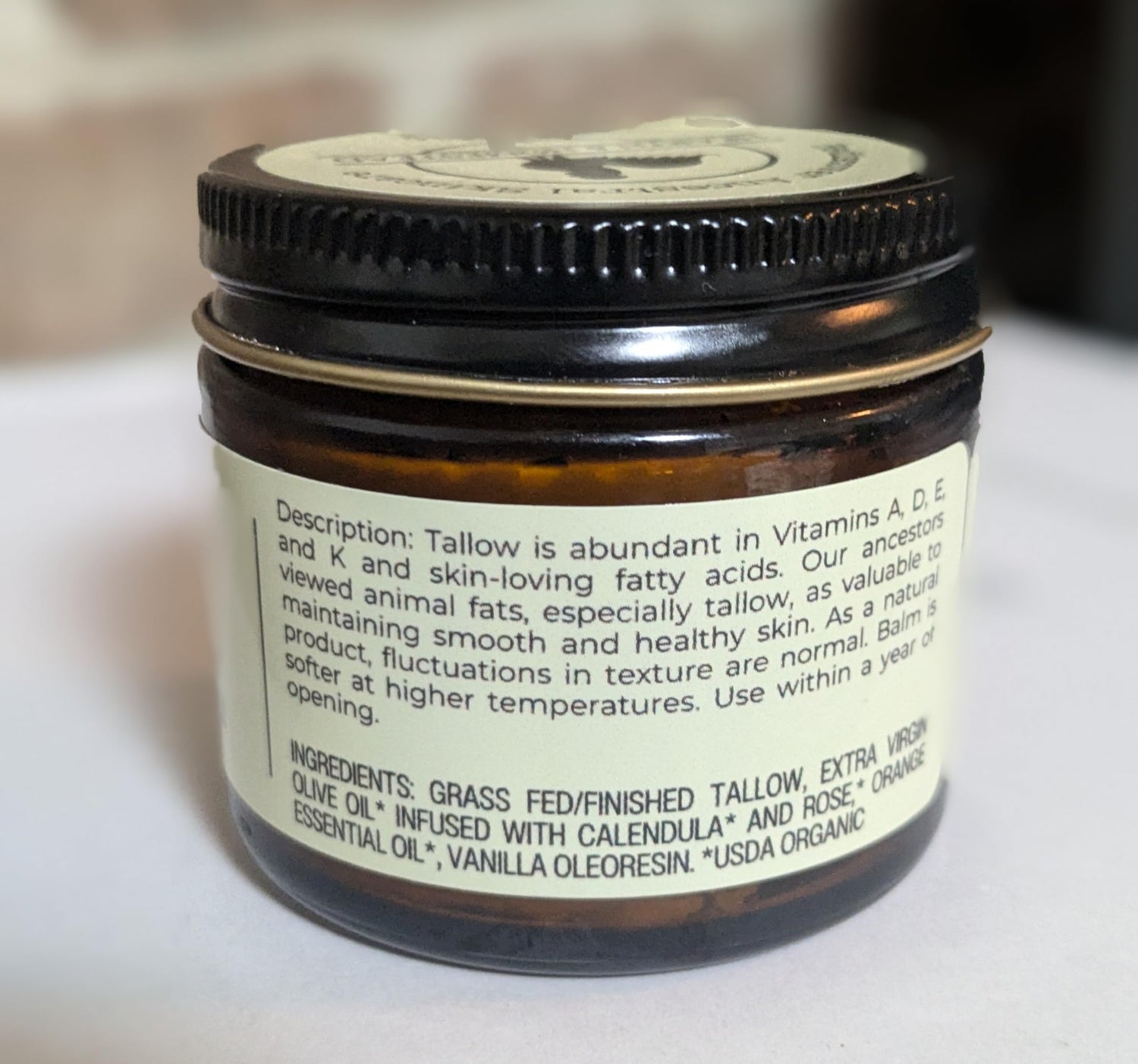 - DO IT LIKE GRANDMA DID: Tallow--or rendered beef fat--is ancestral skincare. Our ancestors relied almost solely on animal fats to moisturize, protect, and heal their skin. Enjoy our light, meltable, whipped tallow balm as a contemporary nod to the practice of our forefathers.