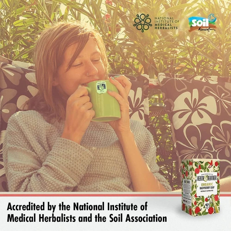 Heath & Heather Organic Raspberry Leaf Teabags | Individually Wrapped Caffeine-Free Herbal Tea Infusion Blend for Pregnancy | 1 Pack of 20, Total 20 Tea Bags