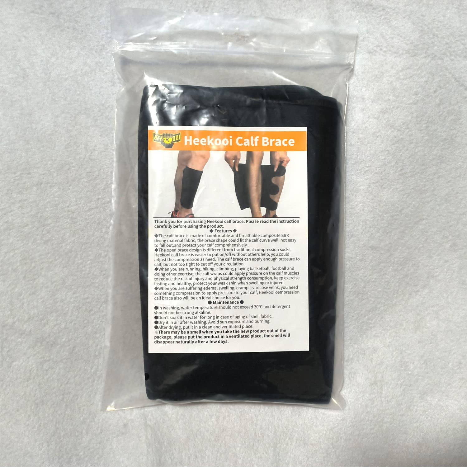 - Calf brace adjustable design helps you apply pressure freely, easy to put on / off. Heekooi shin splint brace is made of neoprene fabric composite SBR diving material, comfortable and elastic, the curve of the shin support will fit your calves perfectly. Heekooi calf brace is exactly a tender assistance for elders.