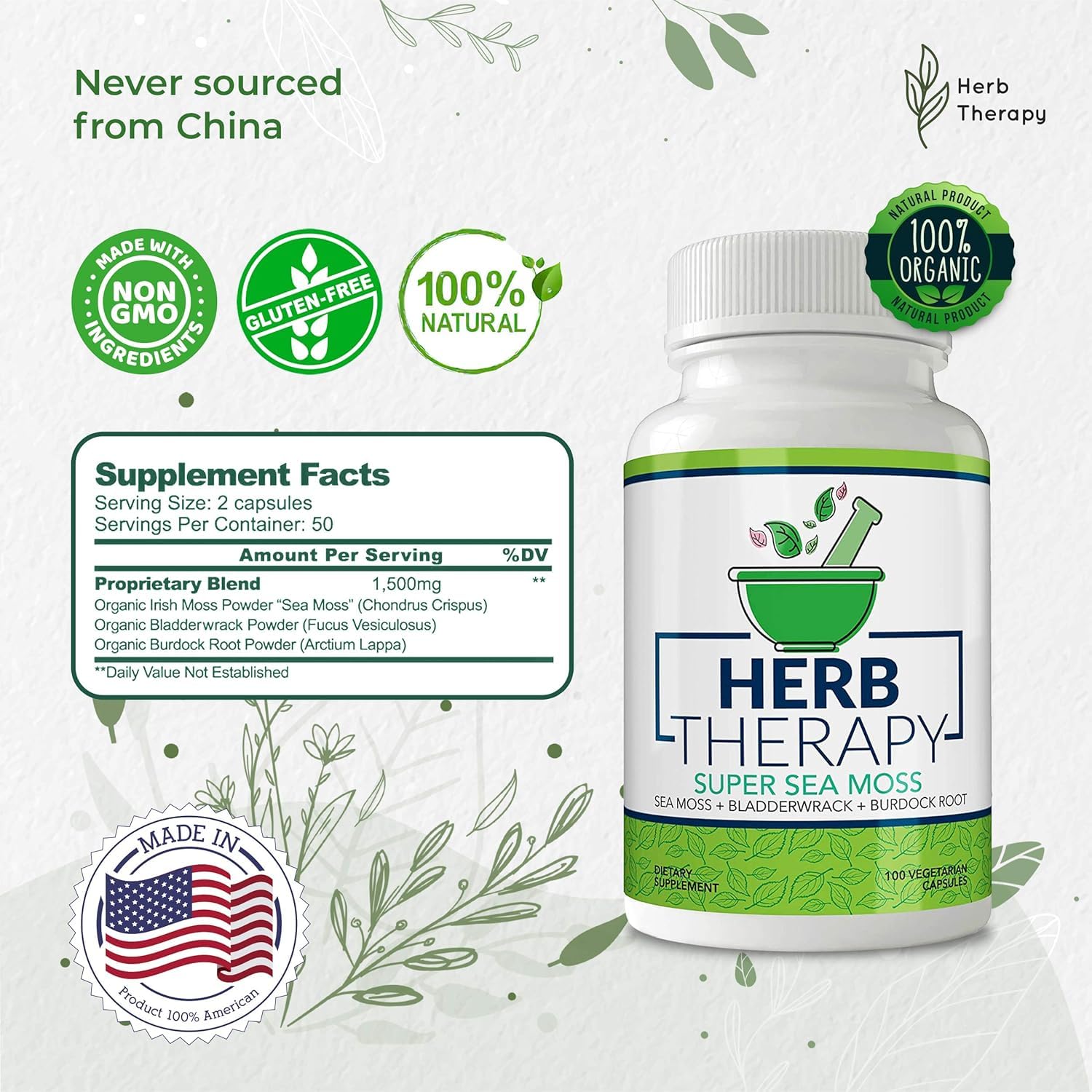 - PURE & ORGANIC FORMULA: We prioritize your health and provide you with a 100% pure, organic, and non-GMO formula. Herb Therapy's organic sea moss capsules contain only pure, premium organic ingredients. Help with boosting your energy, aid digestion, and improve your mood with the powerful blend of Irish sea moss, bladderwrack, and burdock root.