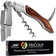 Introducing the HiCoup Premium Waiter's Corkscrew, perfect for wine enthusiasts and hospitality professionals alike. This handheld bottle opener features a modern design with a brown wooden handle and stainless steel/plastic construction. Made by HiCoup, a trusted brand in the industry, this corkscrew is a must-have for any home bar or restaurant.