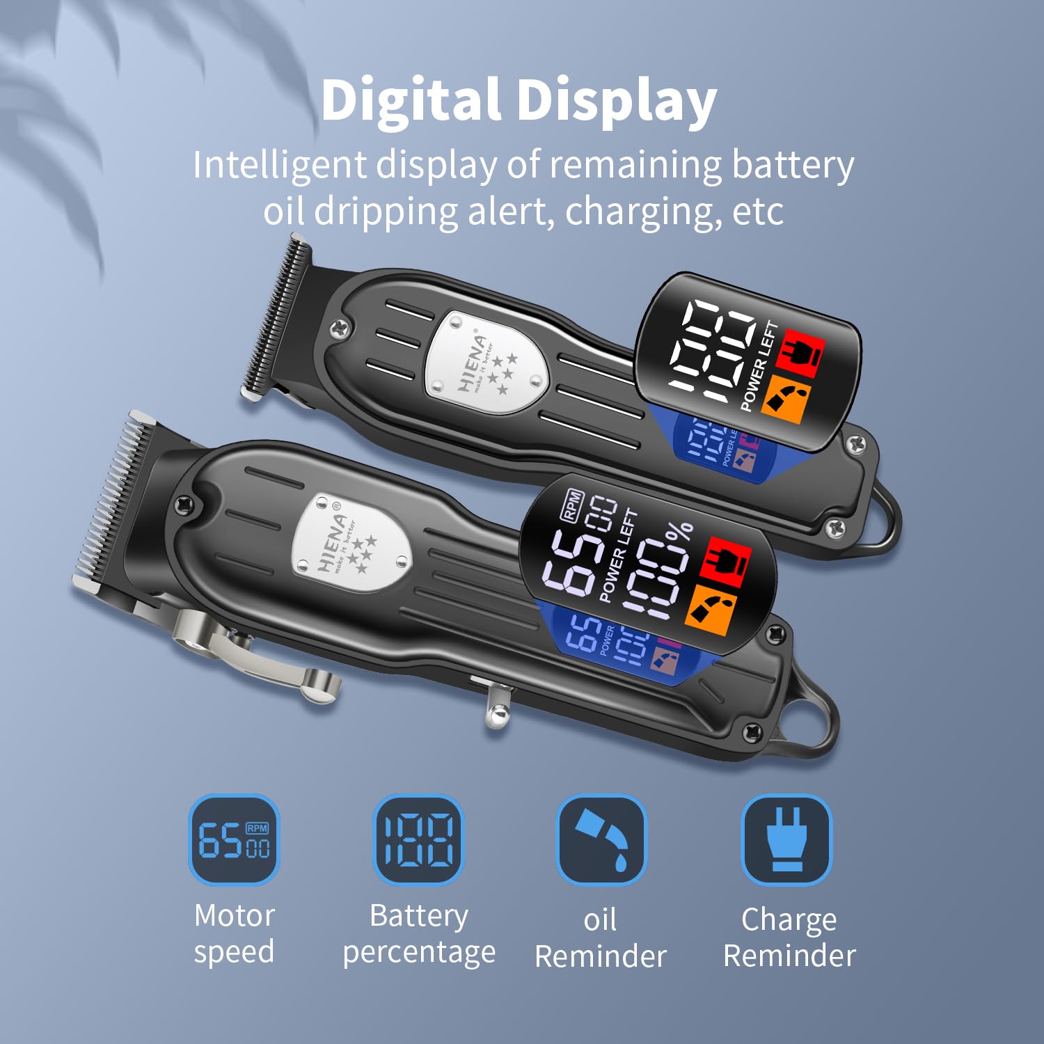 - 【Smart LCD Display and indicator lights】The hair clipper, trimmer and nose hair clippers in the hair cutting kit features a clear smart LED screen that shows the battery percentage from 0 to 100, and shaver is equipped with intelligent light indicator, It also includes intelligent reminders for charging, refueling, and cleaning, making it convenient for users to access various status displays.