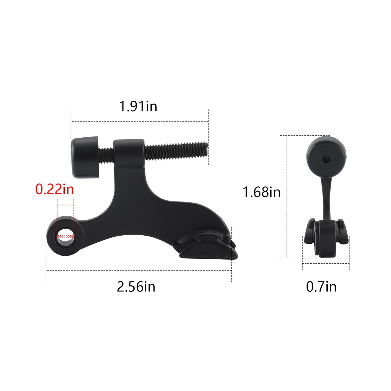 - 12 pack hinge pin door stops, 2.56" from 0.22" diameter hinge pin, 1.91" adjustable head screw. The hinge pin door stop is suitable for most doors