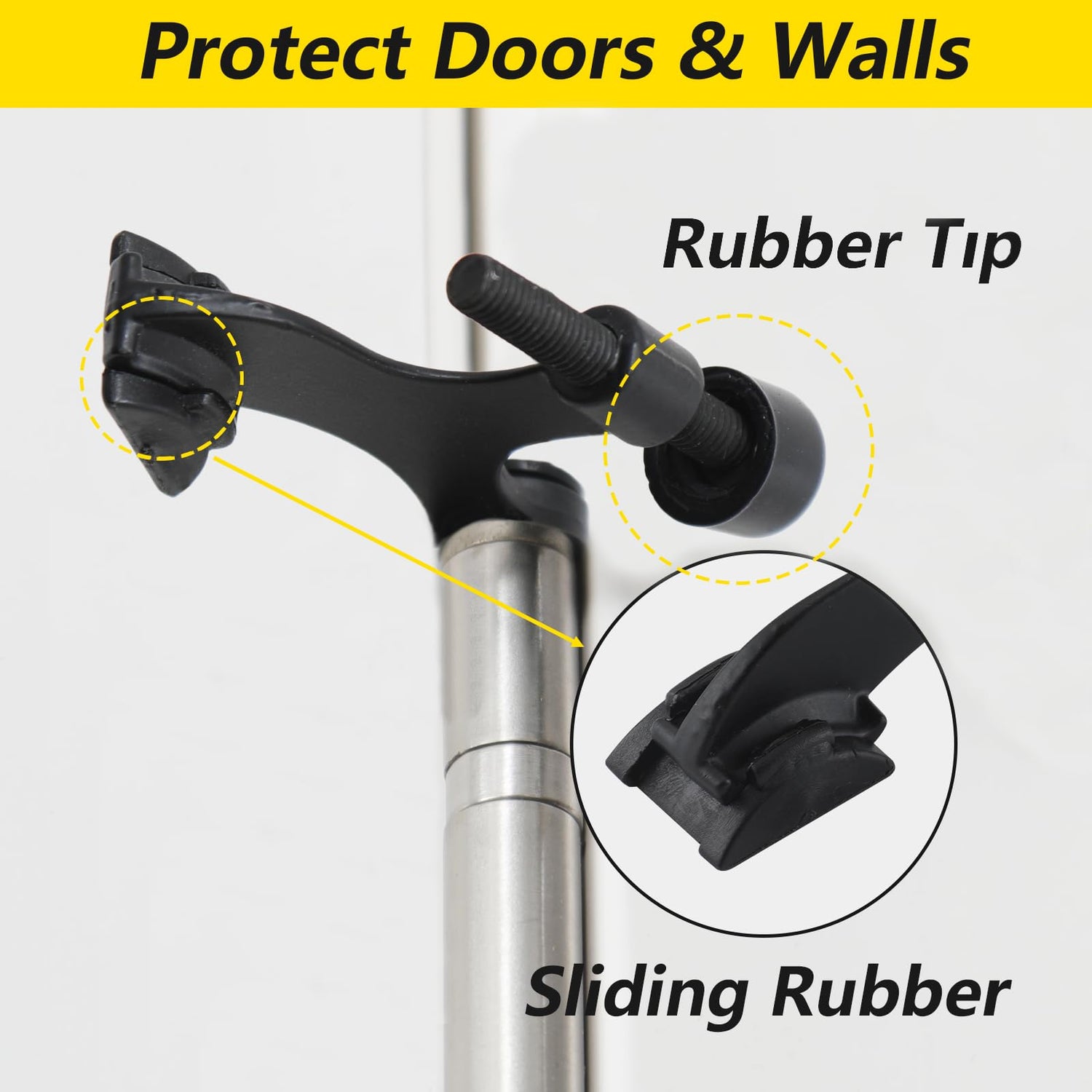 - Door stopper with plastics bumper tip, prevent nicks, scratches and wall marks, to protect your doors and walls from unnecessary damage