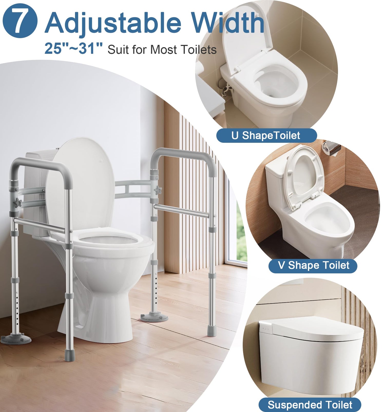 - Adjustable Width & Height: Toilet safety frame easily adjustable width and height to fit your needs. The width adjusted from 25 to 31 inches to suit most toilets, while the height adjusted from 26 to 32 inches, giving you the perfect fit for comfort and convenience