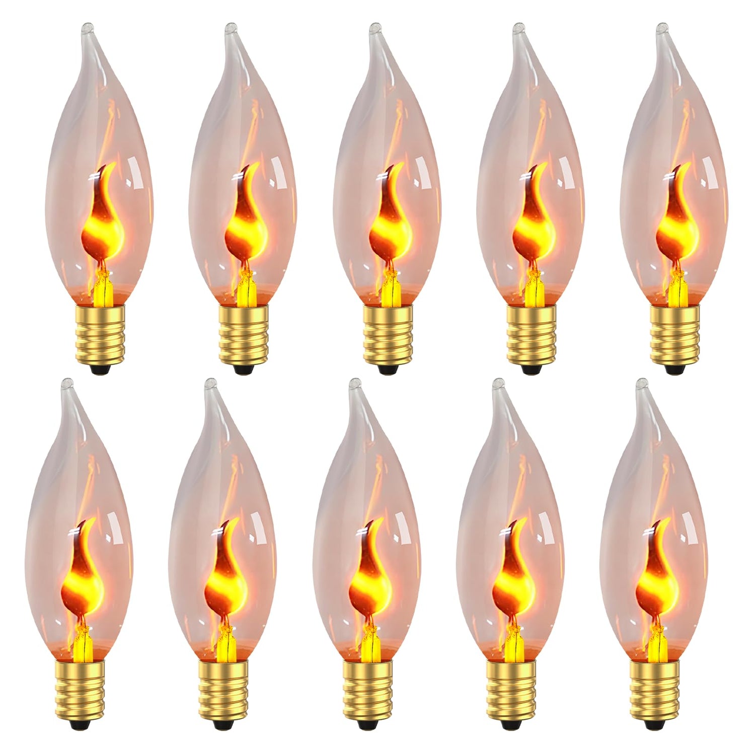 Hompavo Upgraded Flame Light Bulbs, E12 Candelabra Small Base, Clear Glass Flickering Fire Bulb for Halloween Christmas Party Porch Indoor & Outdoor Home Decoration, 10 Pack