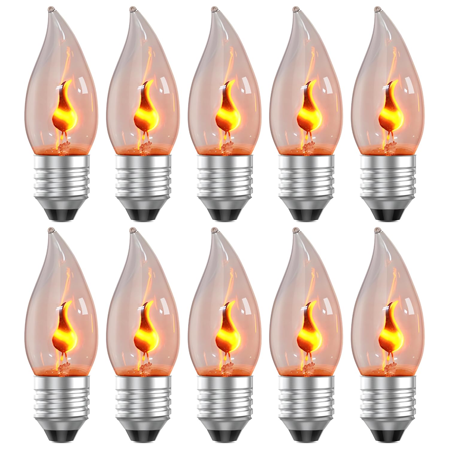 Hompavo Upgraded Flame Light Bulbs, E26 Flickering Fire Light Bulbs Flame Candle for Halloween Christmas Party Patio Porch Home Indoor & Outdoor Decorations - 10 Pack