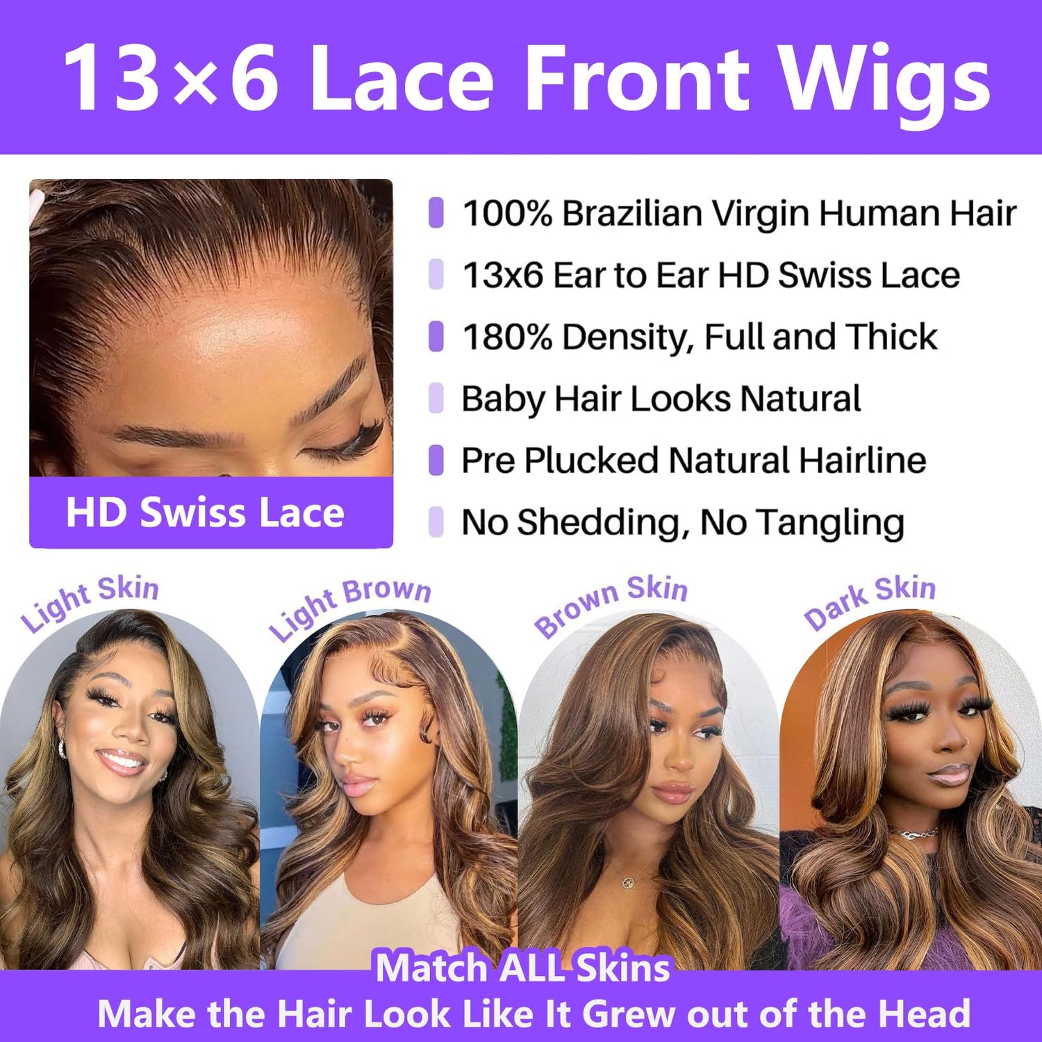 - Stylish for All Occasions: Chocolate brown to honey gold, trendy and confidence-boosting hair colors. Perfect for dates, parties, and everyday wear, Brown and blonde wig human hair is a chic choice for you and your loved ones. Every wig has undergone rigorous quality inspection to ensure order carefree. We’d love to assist anything about hair, install or maintenance, don’t hesitate.