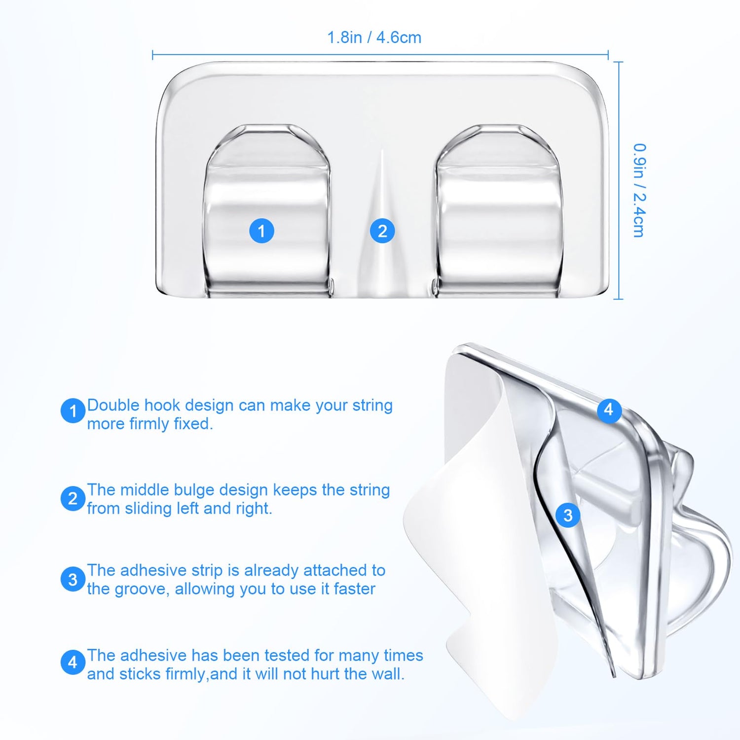 - [ Double hook design ] With a unique double hook design, our Outdoor String Lights Clips ensure that lights stay in place and at the perfect height every time, making them ideal for bistro, pergola, and cafe settings