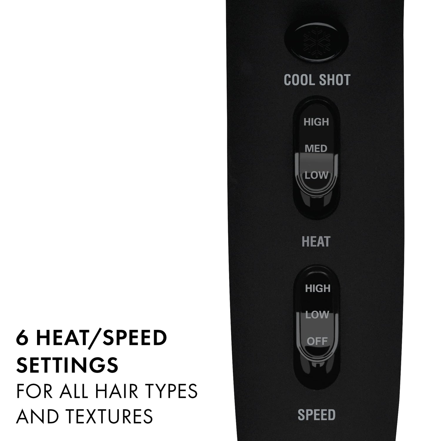 • All Hair Types: 1875-Watt. 3 heat/ 2 speed settings for complete drying and styling flexibility. Cold shot button releases cool air to lock in the style.