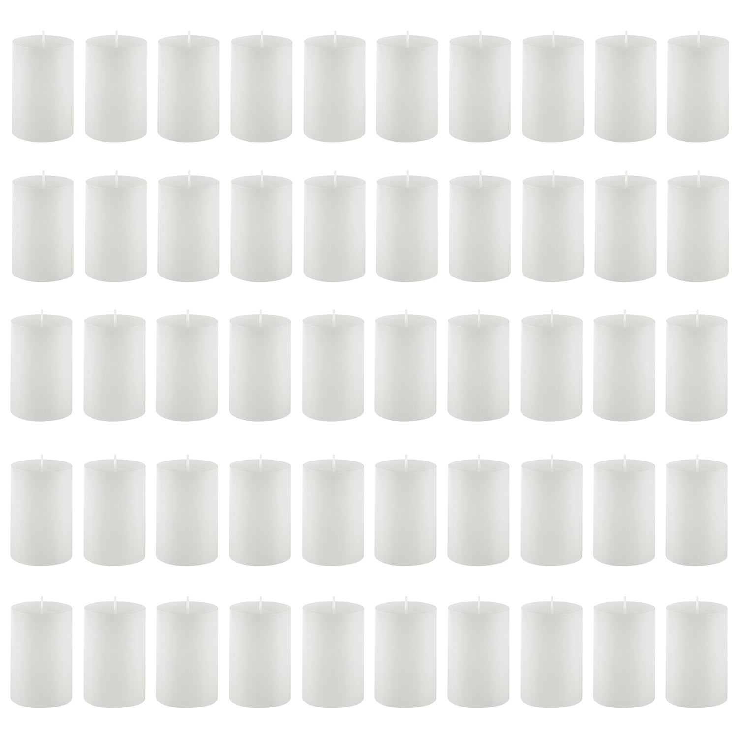 Housecret 50 Pack 2" D x 3" H (20 Hour Burn Time) White Unscented Pillar Votive Candles, Hand Poured Wax Candle Ideal Gifts for Weddings Birthdays Christmas Holidays Party