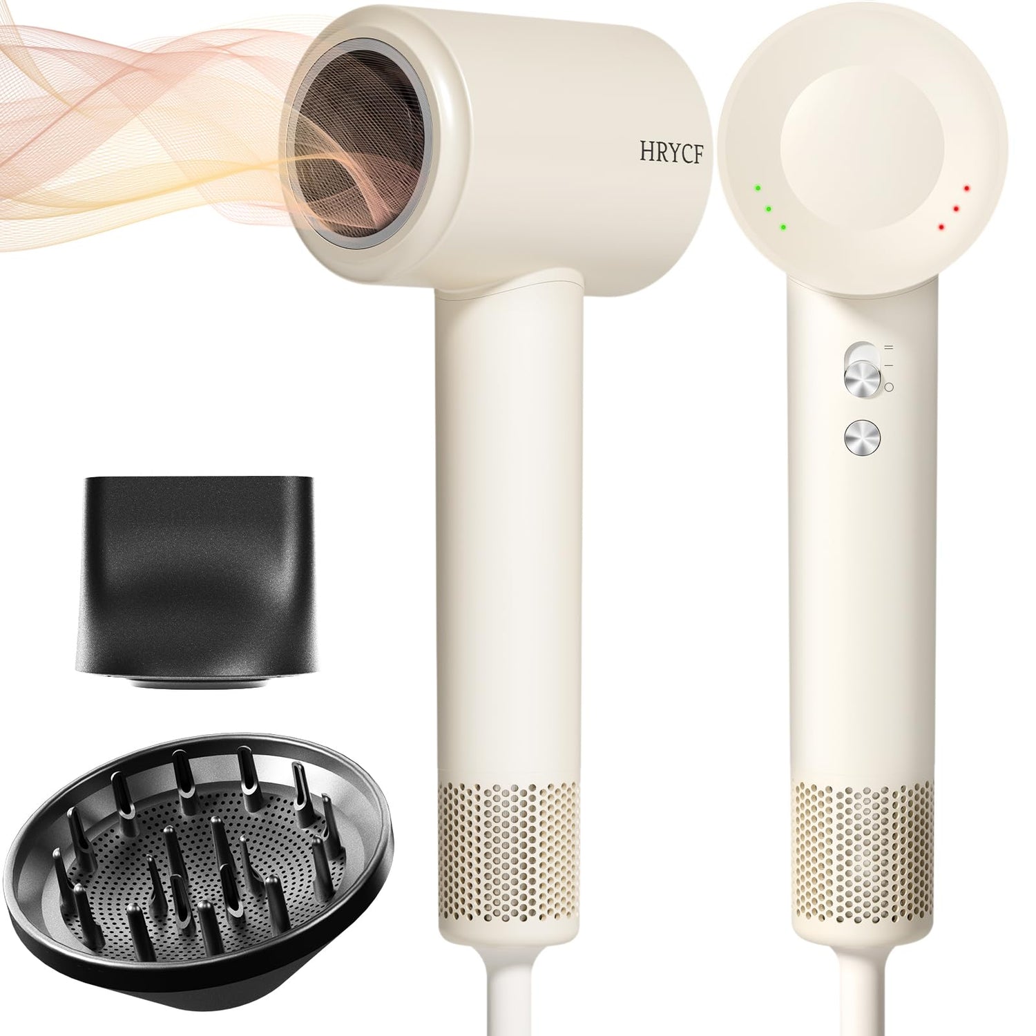 HRYCF Hair Dryer,160000 RPM Blow Dryer with High-Speed Brushless Motor for Fast Drying, Professional Ionic Lightweight Hair Dryers, Thermo-Control Low Noise with Blow Dryers Diffuser & Nozzle
