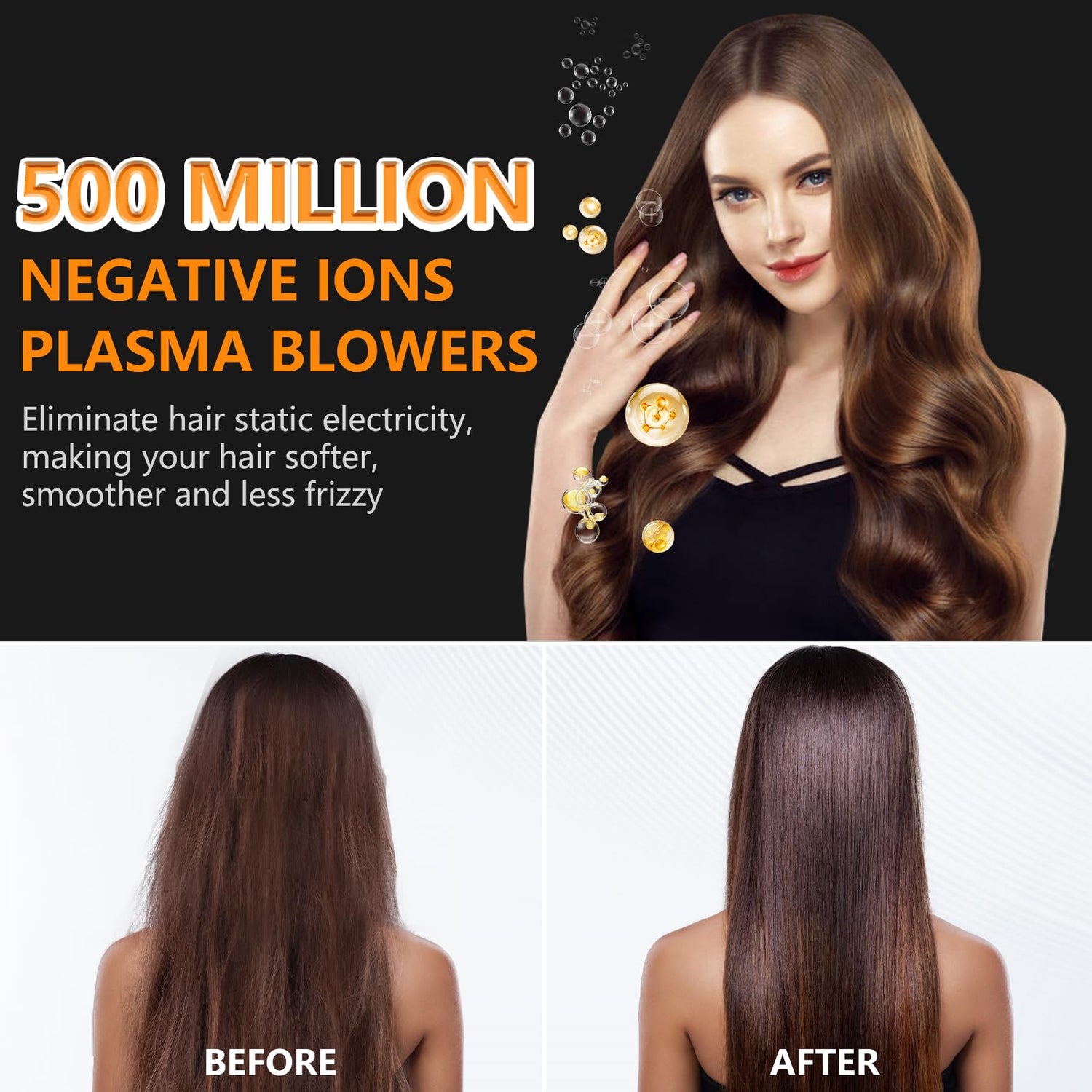 - 【Advanced Negative Ionic Care for Smooth Hair】The upgraded version of Negative Ionic hair dryer built in Negative Ionic generator and it can release 2 billion Negative Ionic during the blow-drying process, helps eliminate static charge from your hair so it's less frizzy, smoother and more shine.