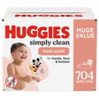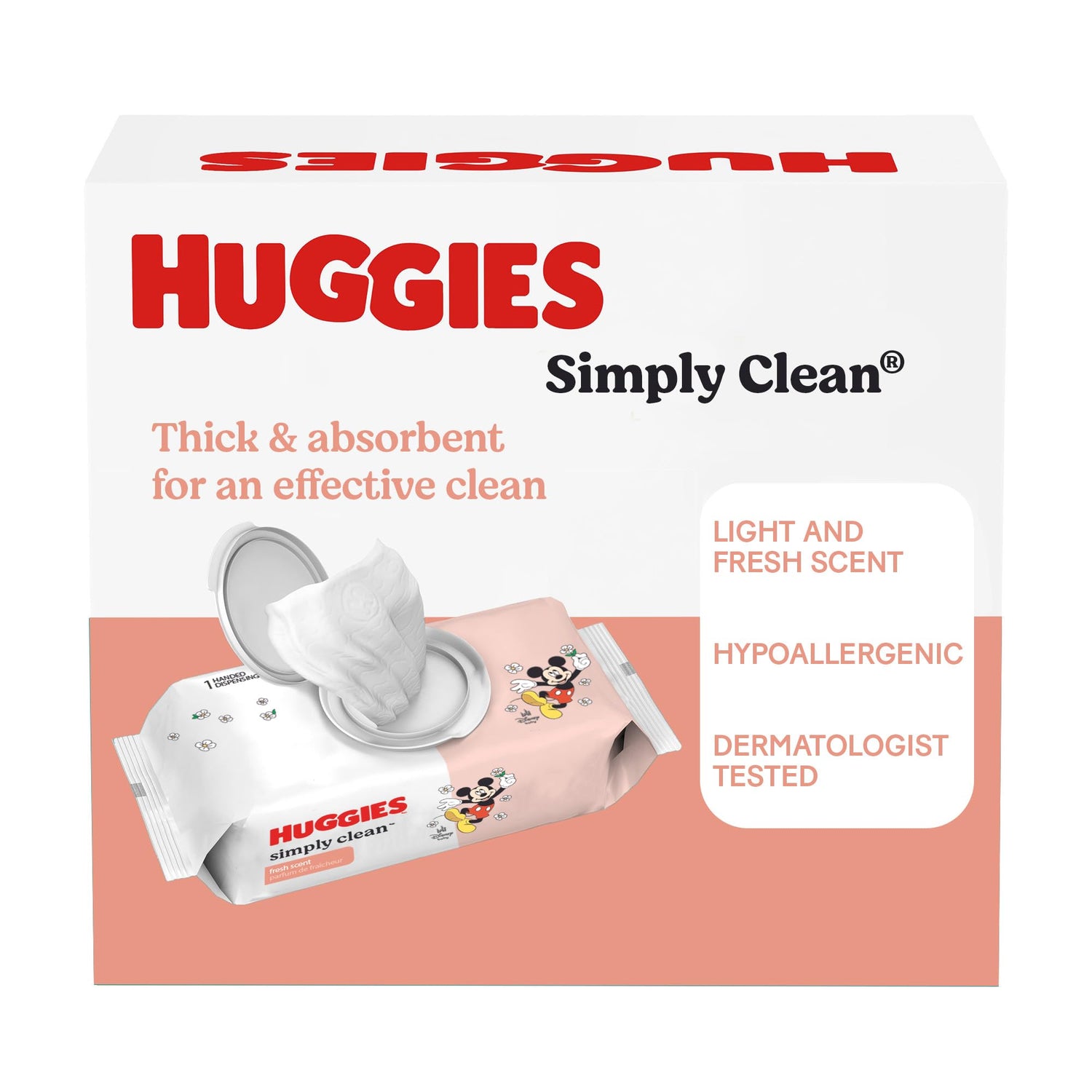 - Huggies Simply Clean Fresh Scent Baby Wipes: 11 flip-top pack of 64 scented baby wipes (704 wipes total); packaging may vary