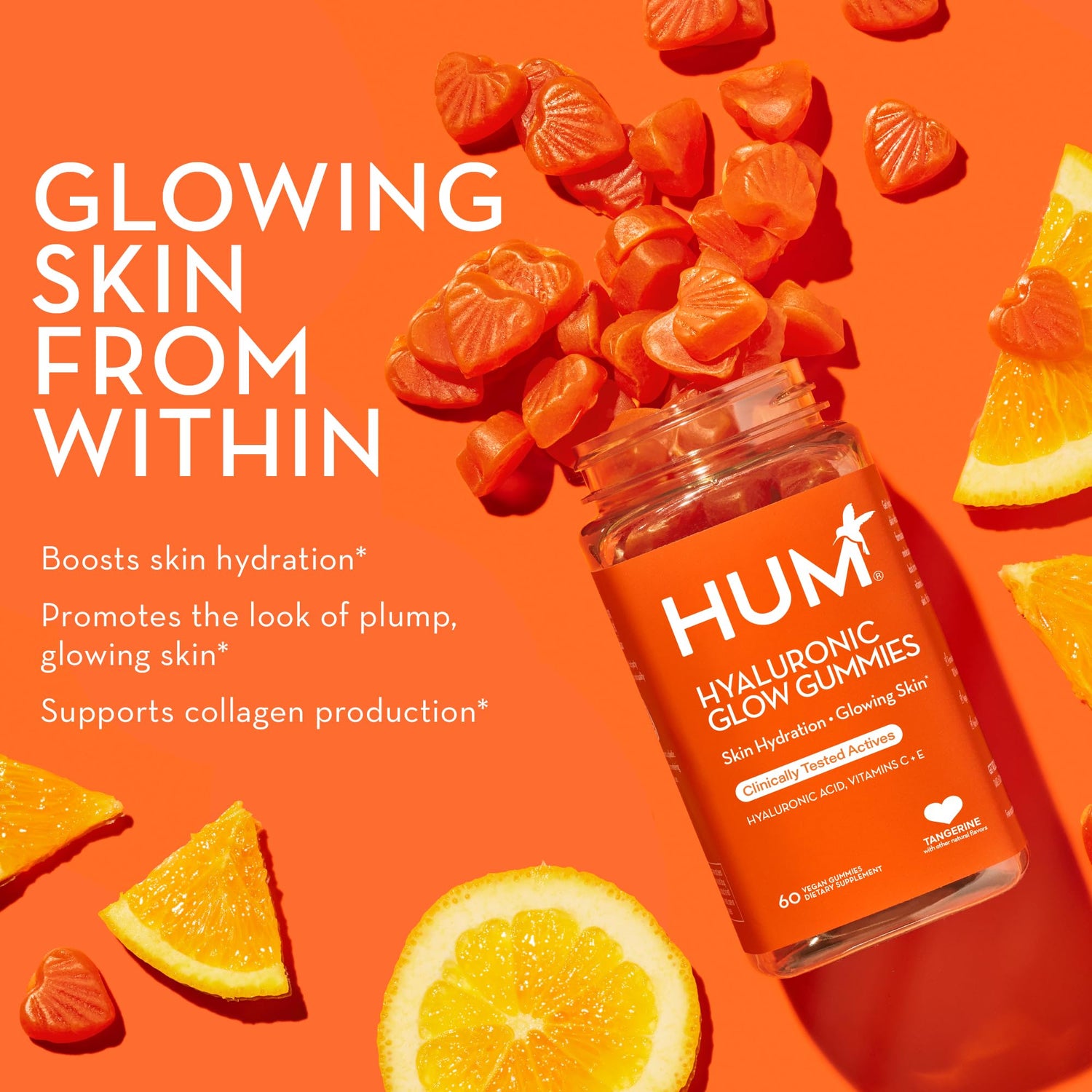 HUM Hyaluronic Glow- Hydrating Skin Supplements for Supporting Collagen Production - Antioxidant-Rich Vitamin C & E for Radiant Glowing Skin - (60-Count)