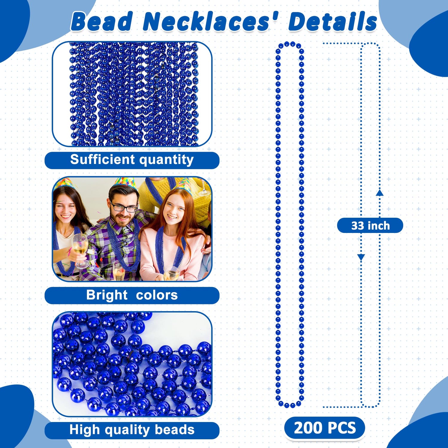 Huskein 200 PCS Beaded Necklace, 33" Mardi Gras Beads, Blue Bead Necklace, Mardi Gras Accessories, Parade Beads Bulk for Hanukkah Christmas Pirate Birthday Gender Costume Party Supplies